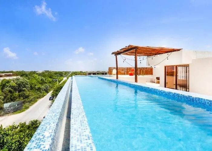 Dotato di una piscina sul tetto e una terrazza, 8Ppl Penthouse Private Pool Appartamento, di 330 m^2, è situato nel quartiere Zama di Tulum, a 4 km dall'Alumbra Mercado Orgánico. Gli ospiti possono godere di un soggiorno più rilassante in quest'appartamento con l'aggiunta di una jacuzzi e una piscina all'aperto.